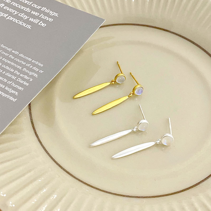 Color: Frosted moon stone stud earrings-Silver, frosted moon stone stud earrings-Gold